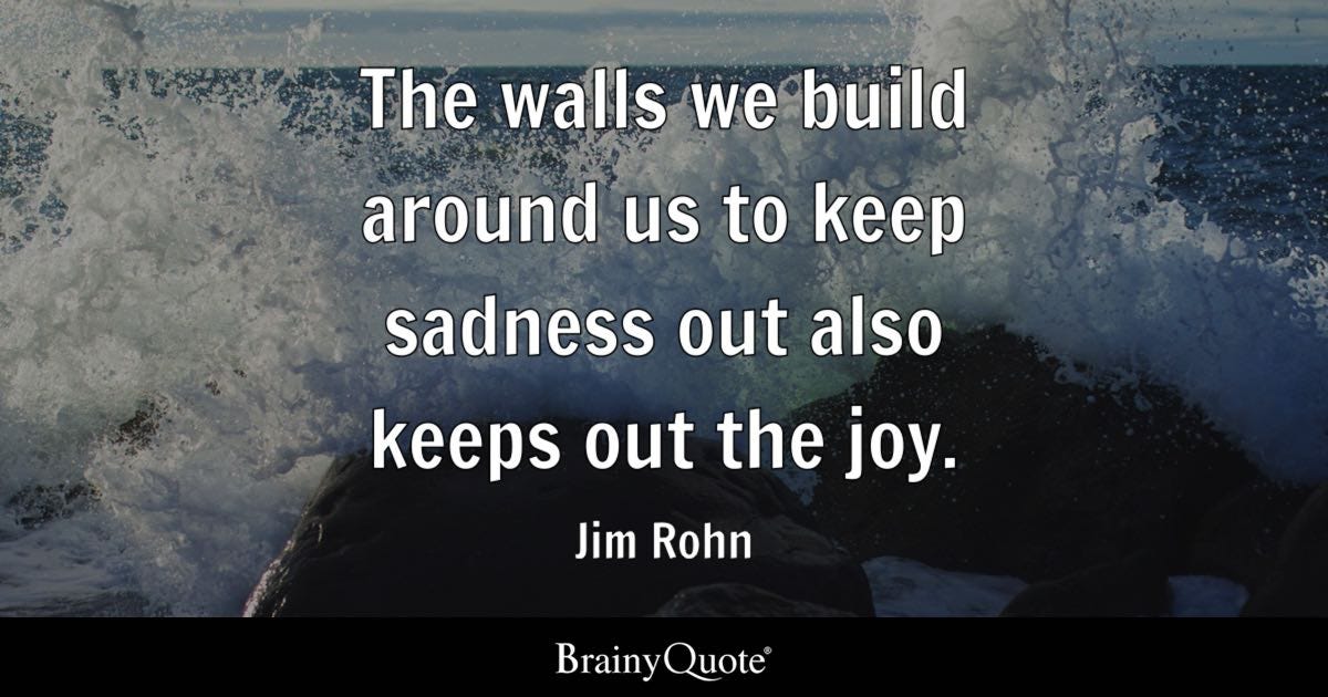 "The walls we build around us to keep sadness out also keeps out the joy." - Jim Rohn